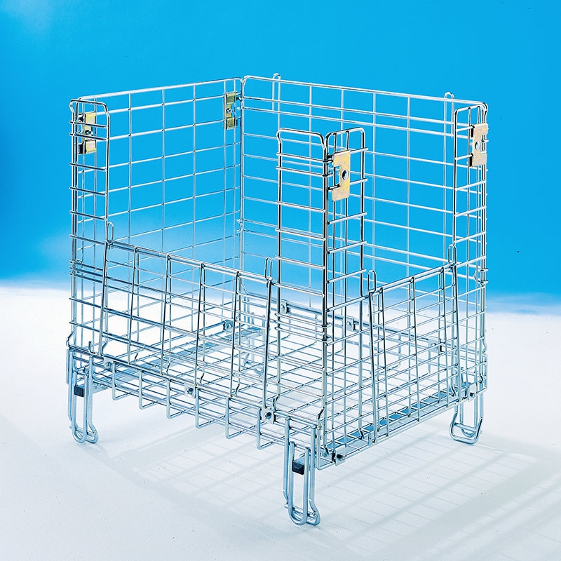 Contenitore industriale in filo metallico zincato elettroliticamente progettato per facilitare i trasporti su camion; le dimensioni standard 810×630 occupano mezzo pallet.