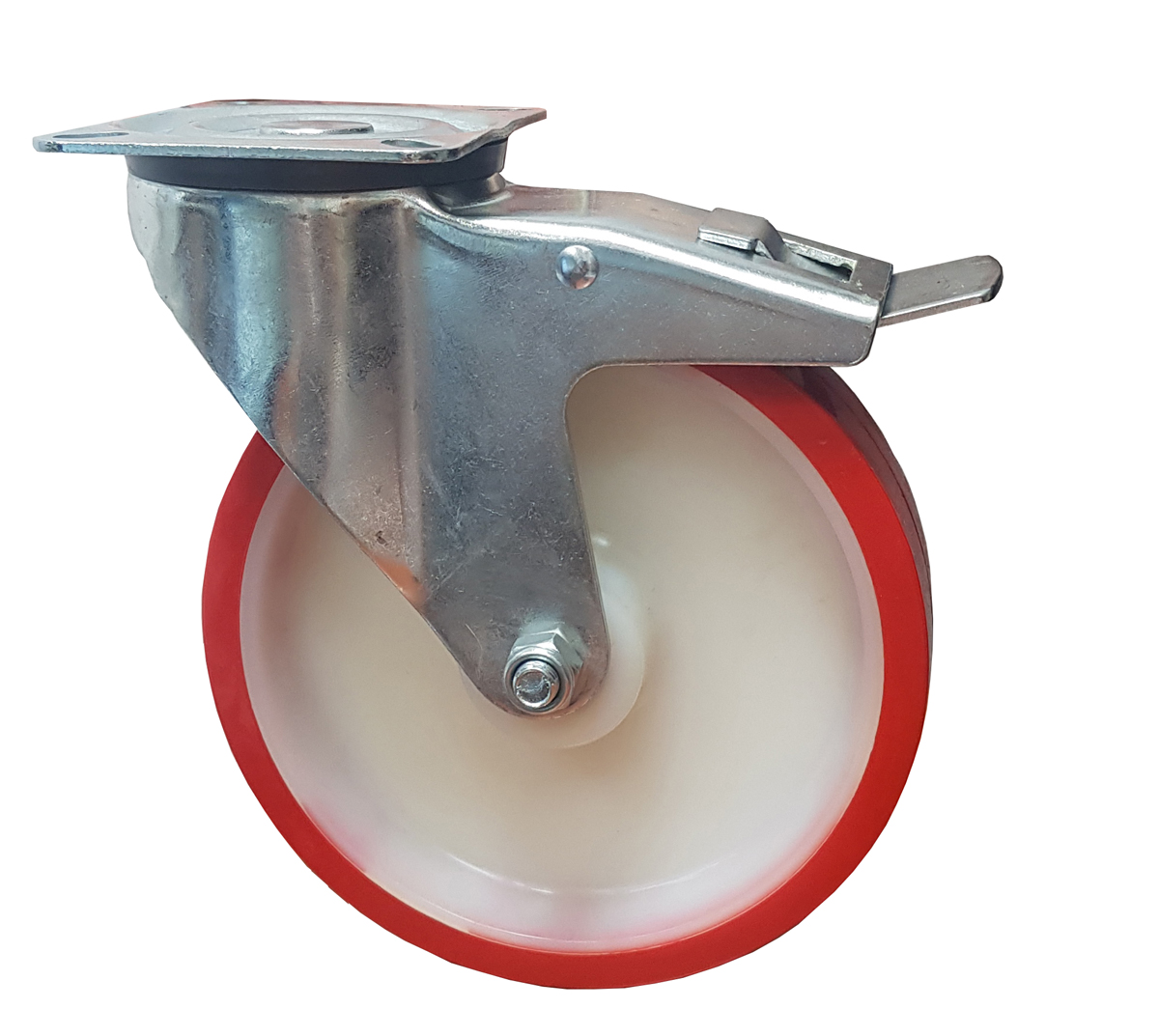 Ruota Poliuretano – Disco Nylon Girevole a Piastra con Freno